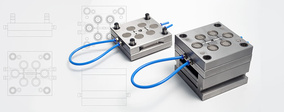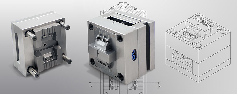 Molde de inyección con postizos en P20 con noyo hidráulico.