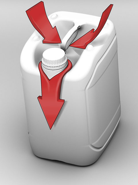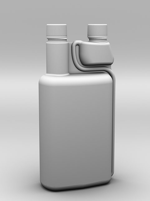 Diseño y modelado de envase con dosificador por diferencia de presión y marcas de llenado.